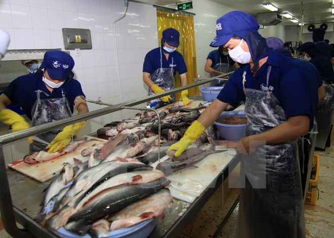 Chế biến cá tra xuất khẩu. (Ảnh: Vũ Sinh/TTXVN)